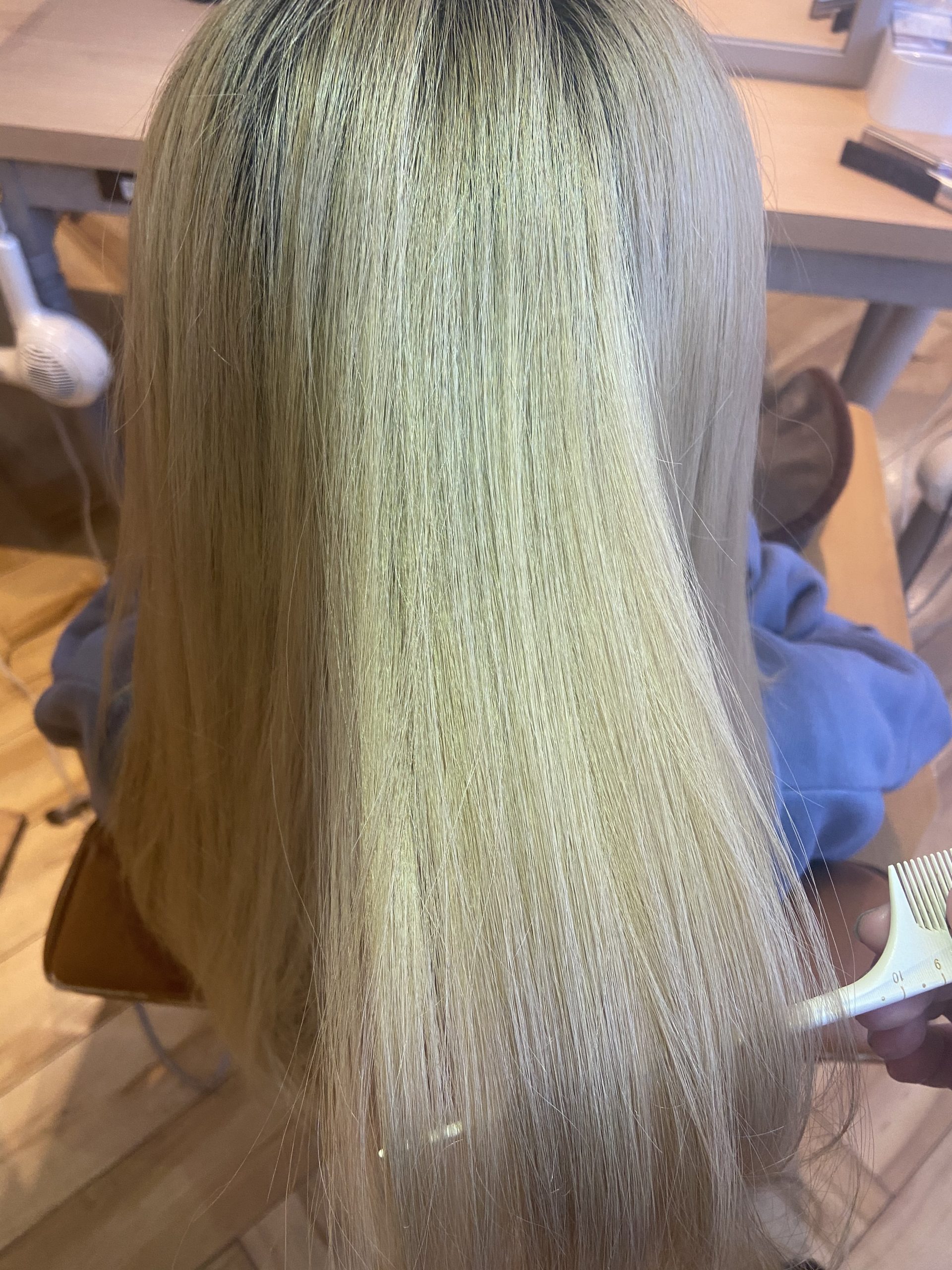 従来の縮毛矯正や他のお店の縮毛矯正はハンドドライの後にすぐストレートアイロンなので真っ直ぐの跡が残ることになります。